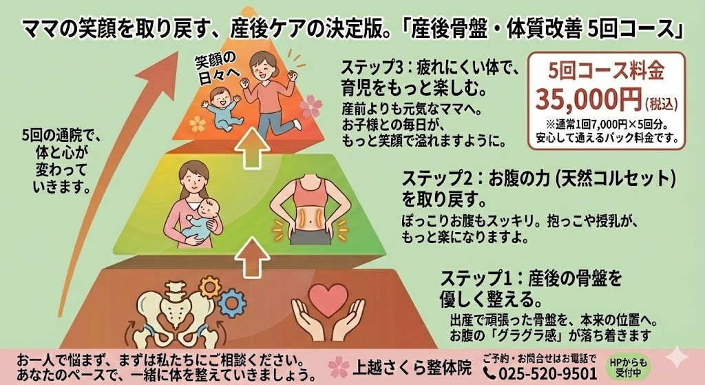是非ともこの機会に、最新の「産後の骨盤矯正」をご利用ください。